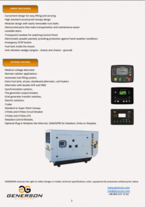 Disponible en version ouverte ou insonorisée (canopy standard ou super silent), le GNPR 33 dispose d’un châssis renforcé avec réservoir intégré de 125 litres, de systèmes antivibratoires performants et d’un large choix d’options : ATS, synchronisation, alternateur PMG, double AVR, radiateur déporté, DeepSea Control Module, et bien plus.